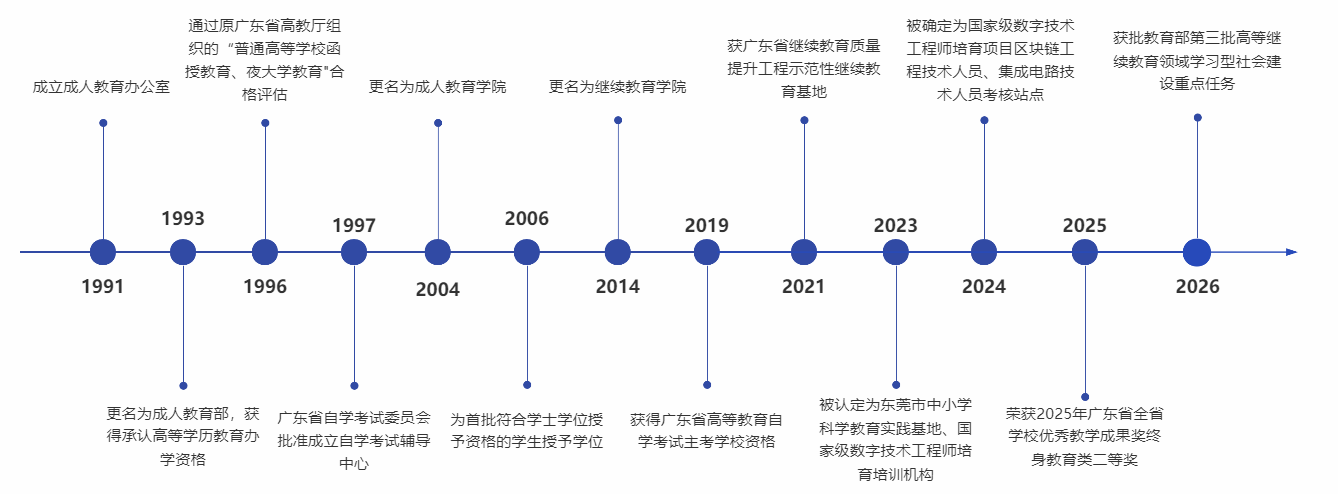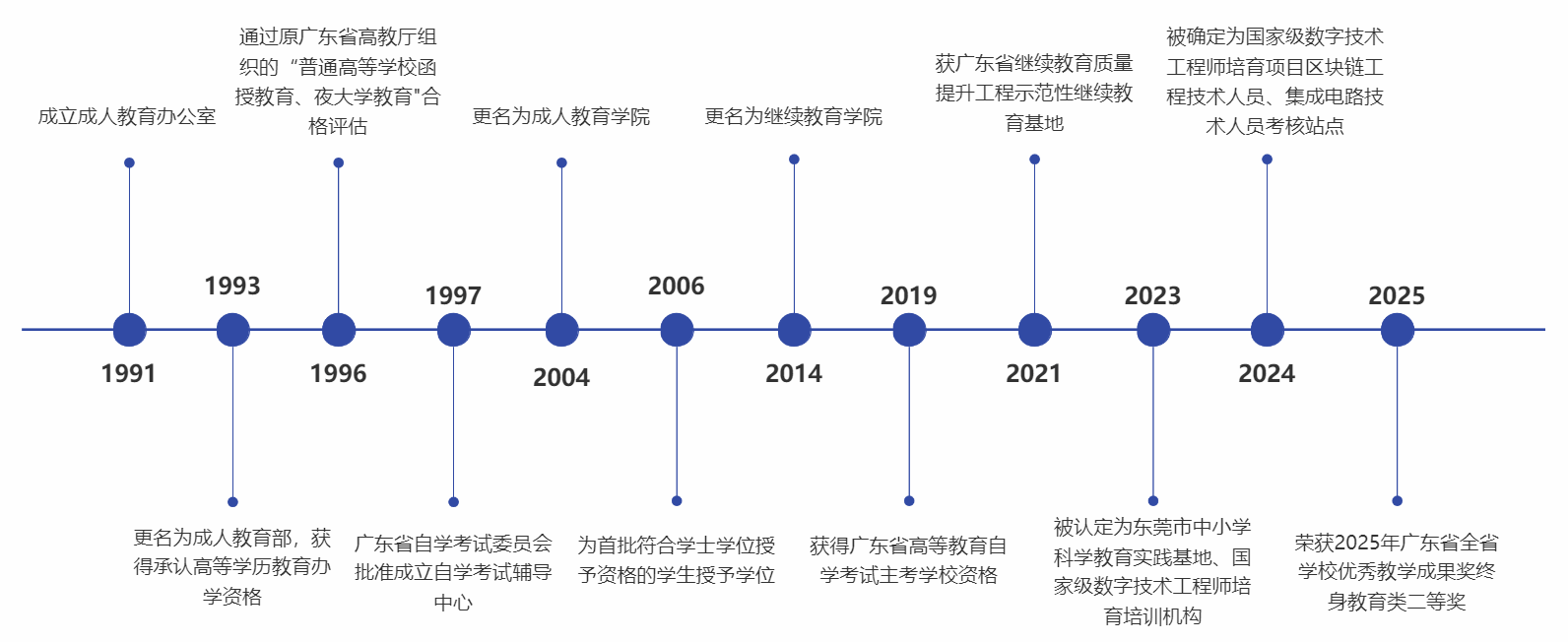 高等学历继续教育现开设工商管理、会计学、计算机科学与技术、土木工程、小学教育等22个本专科专业,涵盖文、法、理、工、教育、管理、经济等7大学科门类。2025年,新增了质量管理工程与化学工程与工艺2个亟需专业,进一步优化专业布局。严格规范校外教学点设置条件和程序,控制布点数量和范围,目前在东莞市、深圳市、惠州市和韶关市设立了12个校外教学点。加强对线上教学和线下面授的全过程管理,教学环节落实到位。加强信息化建设,推进了教务工作信息化管理。截至目前,高等学历继续教育在校生近1.8万人,毕业生累计8万余人,为社会发展提供了优质的服务。